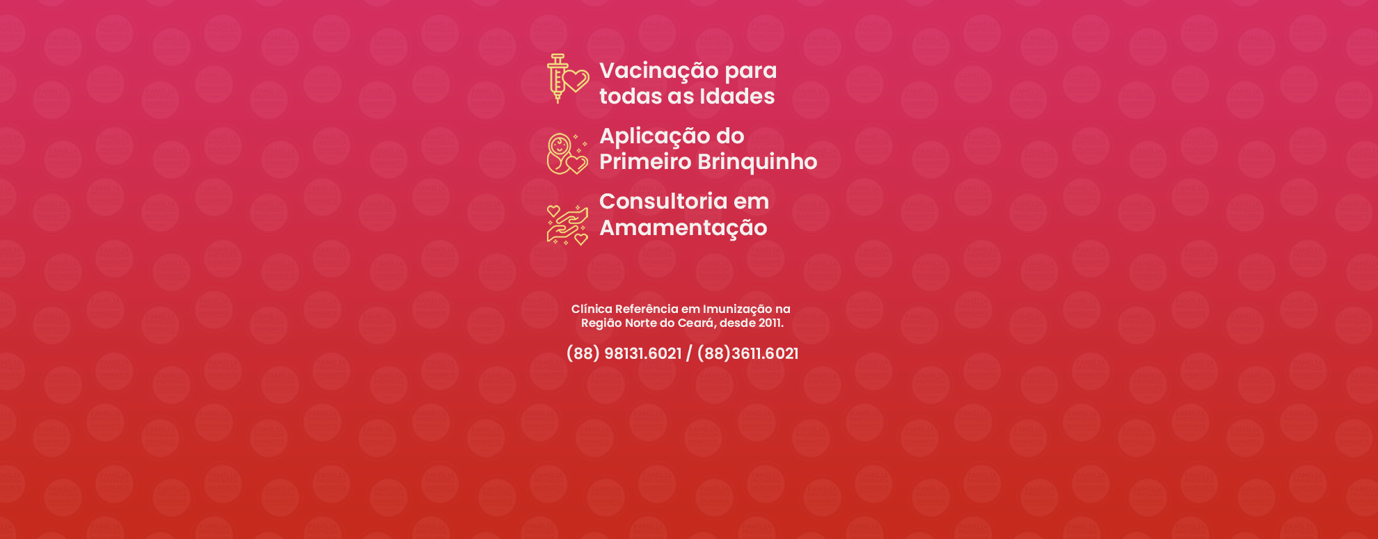 Somos uma Clínica de Vacinação atuando na Macro-região de Sobral desde 2011 com um alto padrão de qualidade no atendimento e na segurança na aplicação e conservação das suas vacinas.